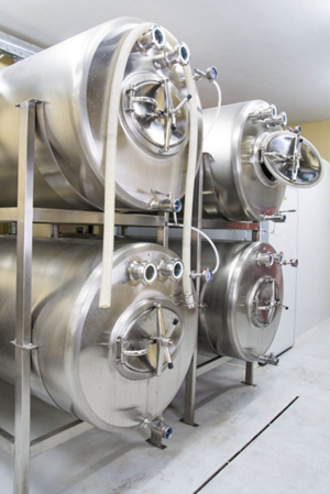La orientación horizontal de los tanques es práctico en fábricas de cerveza con altura insuficiente para la ubicación de los tanques de maduración de cerveza cilíndricos verticales.
