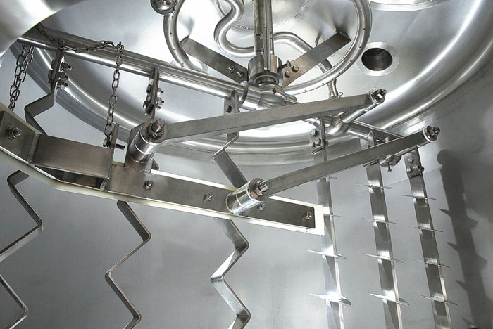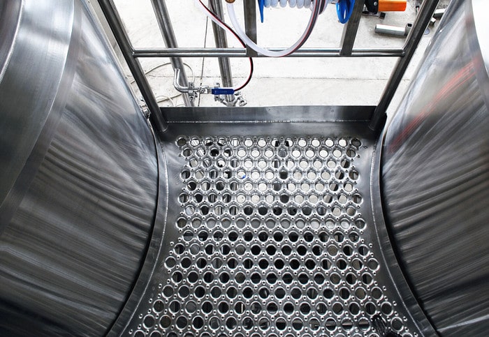 - Boquilla de pulverización CIP debajo del fondo falso