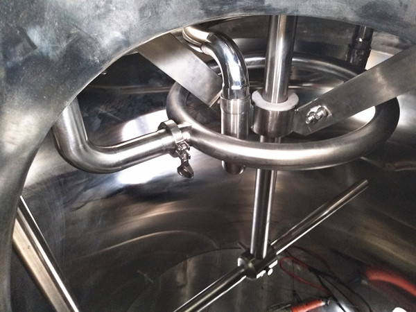 La maceración de puré / Lauter está hecha de acero inoxidable AISI-304 de grado alimenticio de alta calidad con un alto grado de pulido (hasta un acabado espejo). Las soldaduras se pulen en un grado suficiente. El puré de puré tiene una camisa de calentamiento de puré / mosto en todo el diámetro y el cono del recipiente. La camisa de calentamiento está aislada térmicamente con espuma de poliuretano y cubierta con una cubierta exterior de acero inoxidable de grado alimenticio.