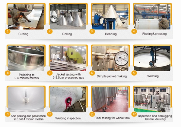 4. Todos los tanques son fabricados por SUS304 / 316, con un pulido interno de menos de 0.4 µm y un pulido externo de menos de 0.8 µm.