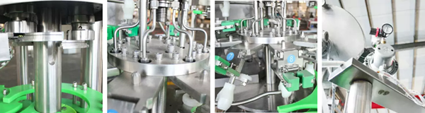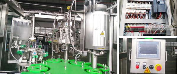 Adopta el principio de llenado isobárico y la válvula de llenado adopta una válvula mecánica de alta precisión. Tiene ventajas de alta velocidad de llenado, alta precisión en el nivel de líquido. Adopte el sistema de control automático MITSUBISHI, realizando la trinidad de las máquinas, y controle el proceso de lavado, llenado y taponado.